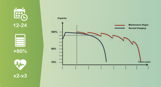 У разі експлуатації батарей у складних температурних умовах (за високої або низькою температури) або при умовах не повного заряду/розряду, термін проведення сервісного обслуговування настає через 2-2,5 роки з моменту введення в експлуатацію